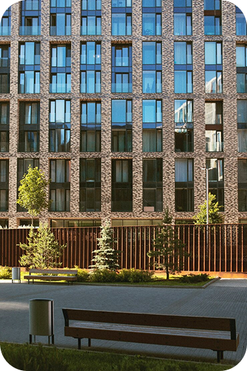 Фасады, ритм окон, материалы — всё подобрано так, чтобы здание не подавляло, а “дышало”: впускало свет, давало приватность, становилось частью ландшафта.