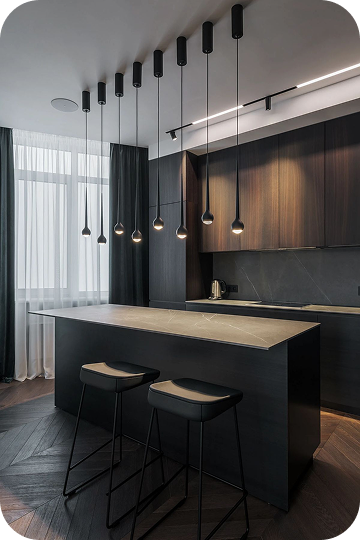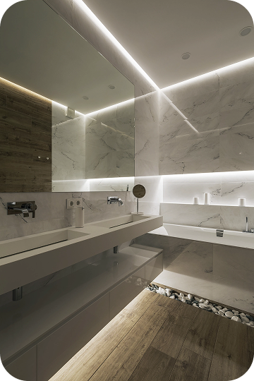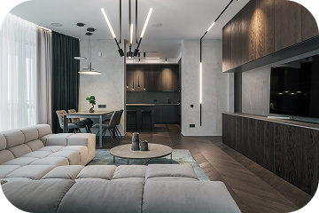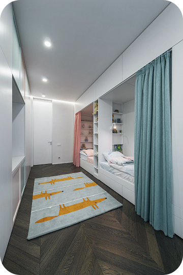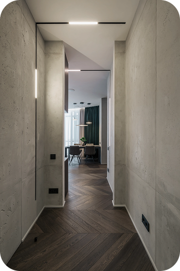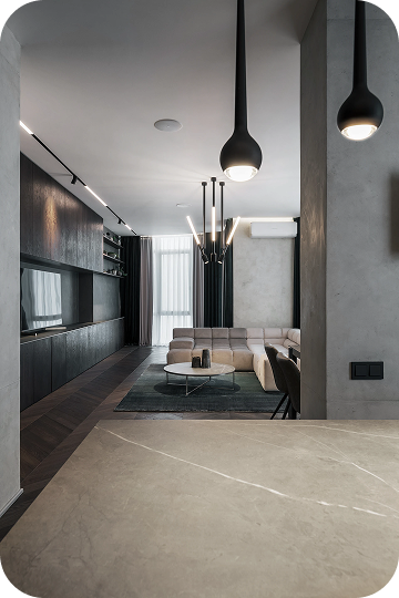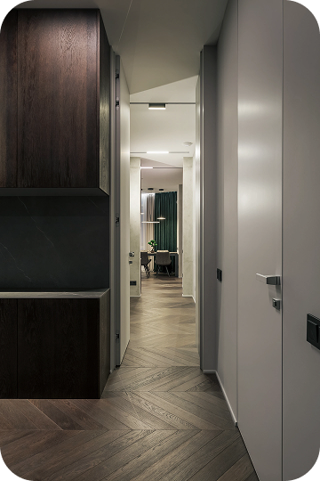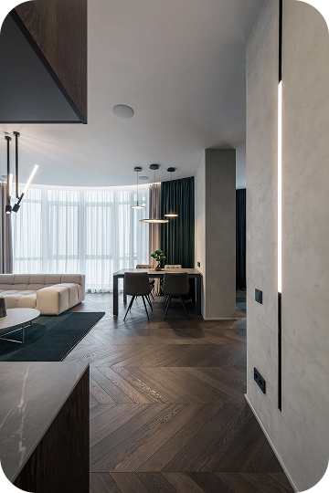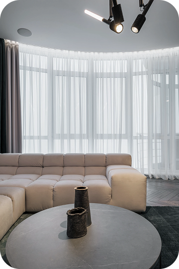 Каждая деталь подобрана вручную: мягкий текстиль, встраиваемый свет, гладкие стены, контрастные акценты. Получился дом, который не требует слов — он просто ощущается.