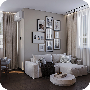 Планировка сохраняет максимум воздуха и света. Мебель и зонирование не перегружают пространство, а плавно ведут взгляд. В проекте нет лишнего — только продуманный баланс уюта и простоты.