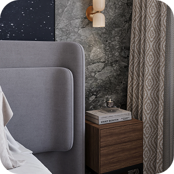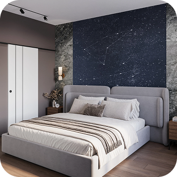 Основу оформления составляют тёплые бежевые оттенки, мягкие ткани, фактурное дерево и натуральный свет. Всё здесь — про ощущение покоя, тепла и заботы, без излишнего декора и шумных акцентов.