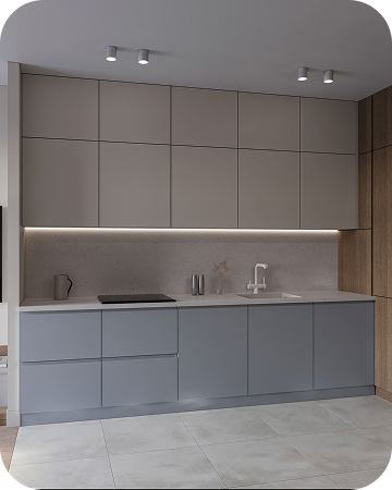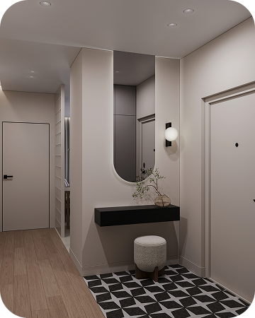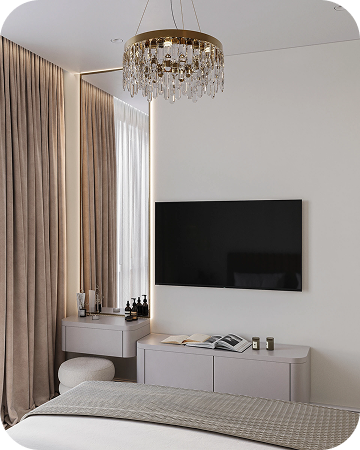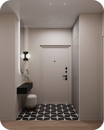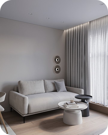 Каждая квартира — как индивидуальный проект:встроенные решения, лаконичная мебель, световая пластика. В доме ощущается баланс: между городом и домом, между дизайном и жизнью.
